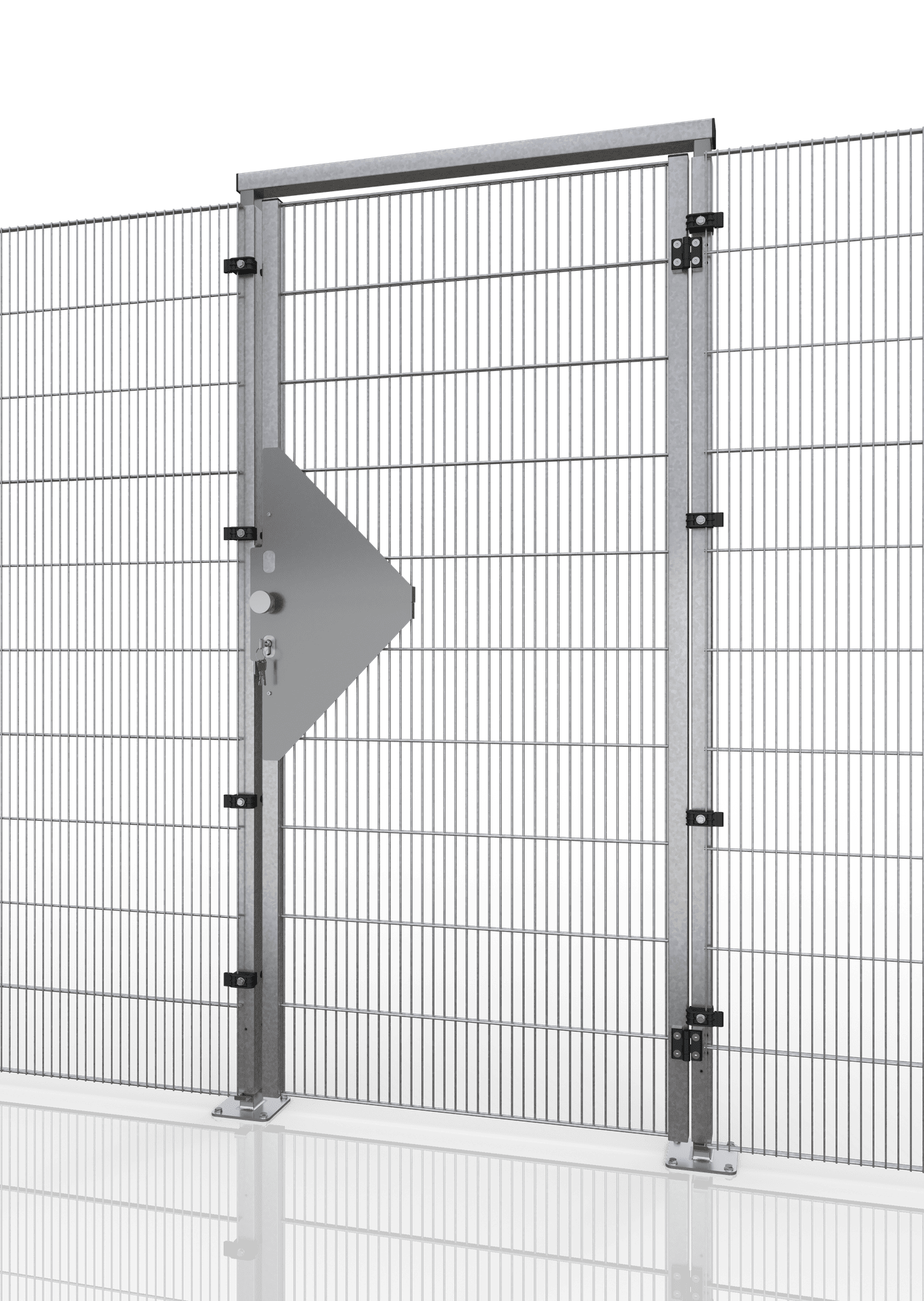 Die Türvariante TS01 ist Bestandteil des Gittertrennwand Systems "ECONFENCE® BASIC LINE ZINK" und für den Einsatz als trennende Distanzschutzeinrichtung ohne Verriegelungseinrichtung als Wartungstür einsetzbar.